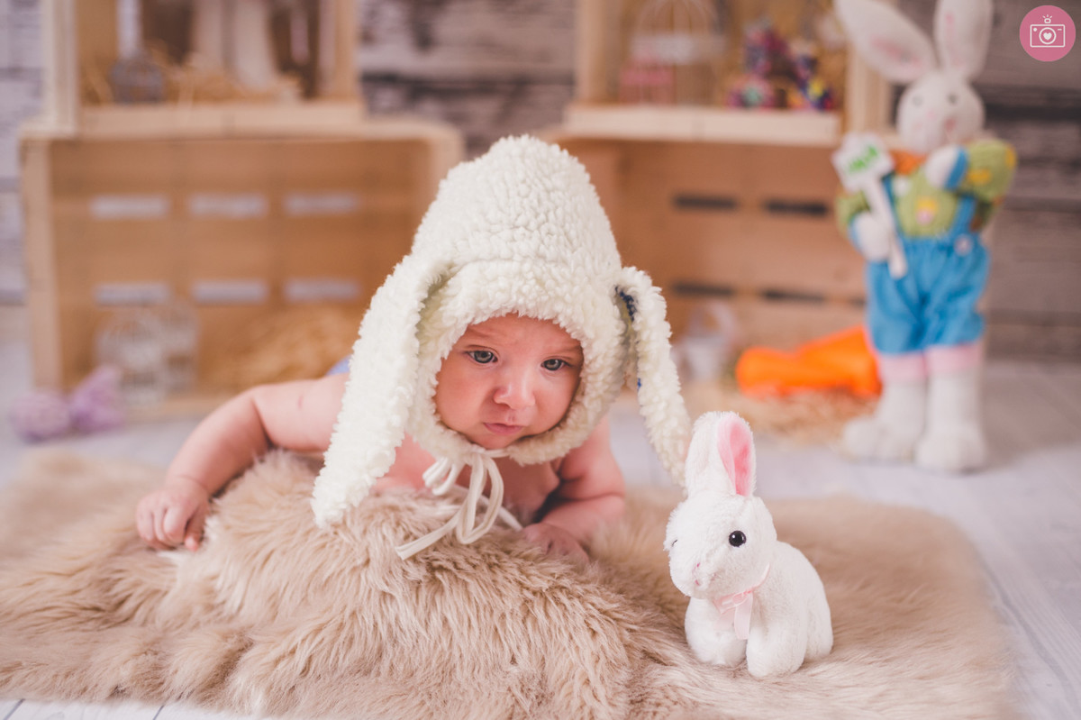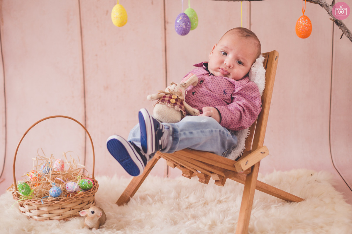 Essa é sua primeira Pascoa, ele estava todo lindinho de suspensório e camisa. <3