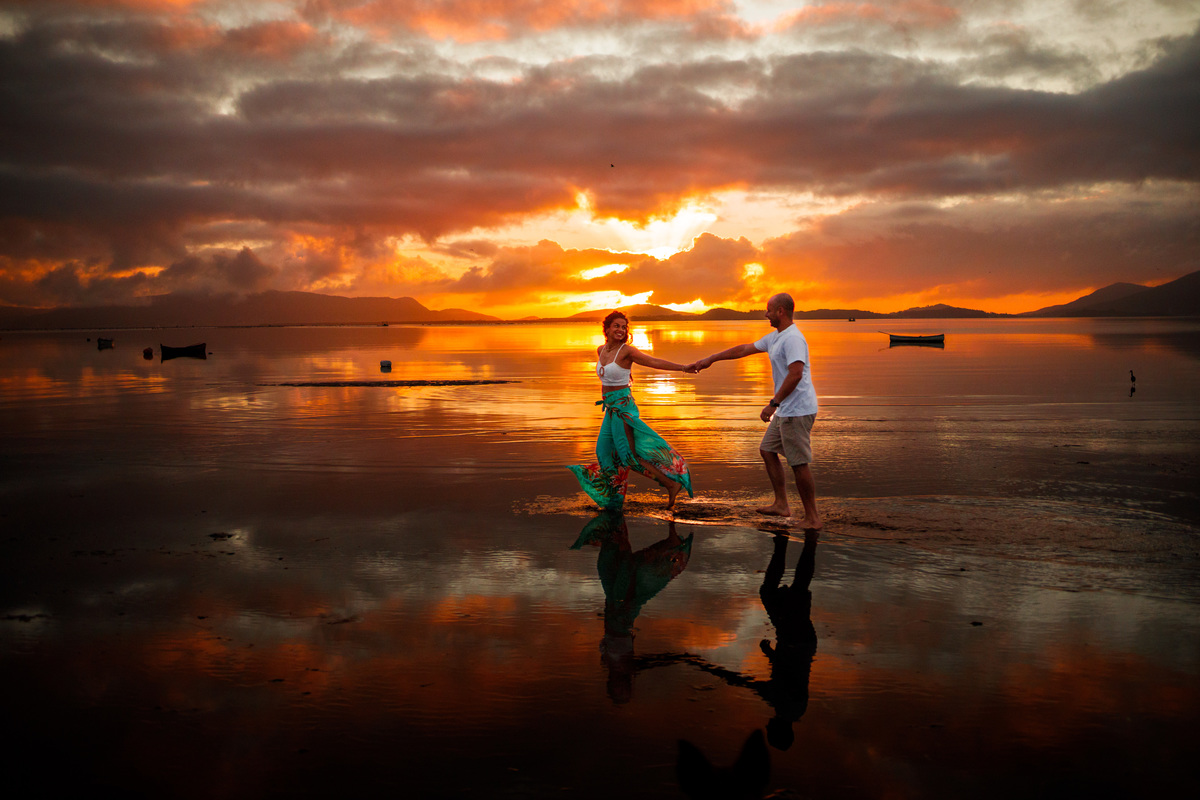 Em uma manhã leve, sem saber se o sol apareceria ou se as nuvens tomariam conta do céu, fomos surpreendidos por um amanhecer esplêndido. As nuvens, tingidas de cor, se refletiam no espelho d’água que se formava no chão. Tudo parecia ter sido preparado com perfeição para guardar em imagens o laço de amor que só cresce — e que agora transborda com a chegada da MaJu, pronta para colorir ainda mais a vida deles. ✨