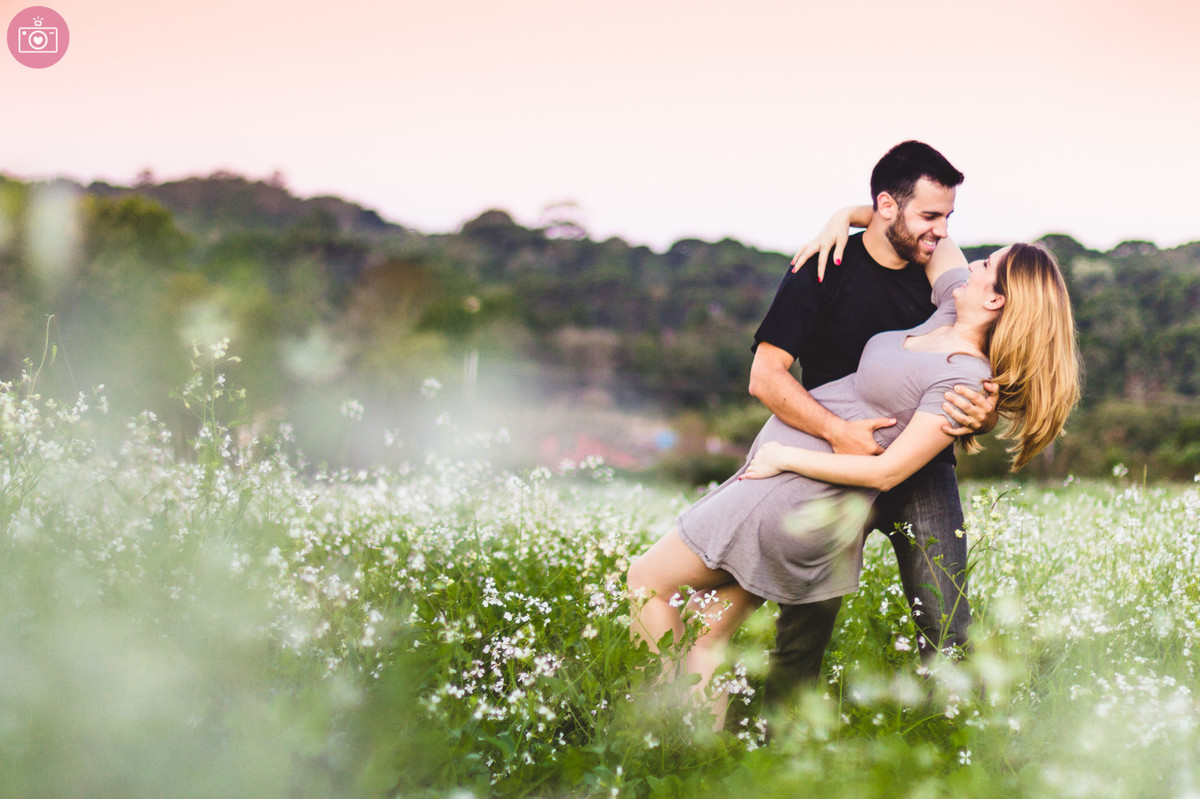 A tarde já havia sido linda, estávamos felizes… Mas para fechar com chave de ouro, Deus nos presenteou com um lindo pôr-do-sol em um campo de flores. <3 Lindo Lindo <3